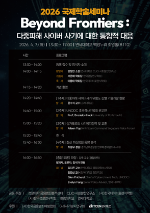 - 4월 7일(화) 연세대학교에서 ‘Beyond Frontiers : 다중피해 사이버 사기에 대한 통합적 대응’ 주제로 열려